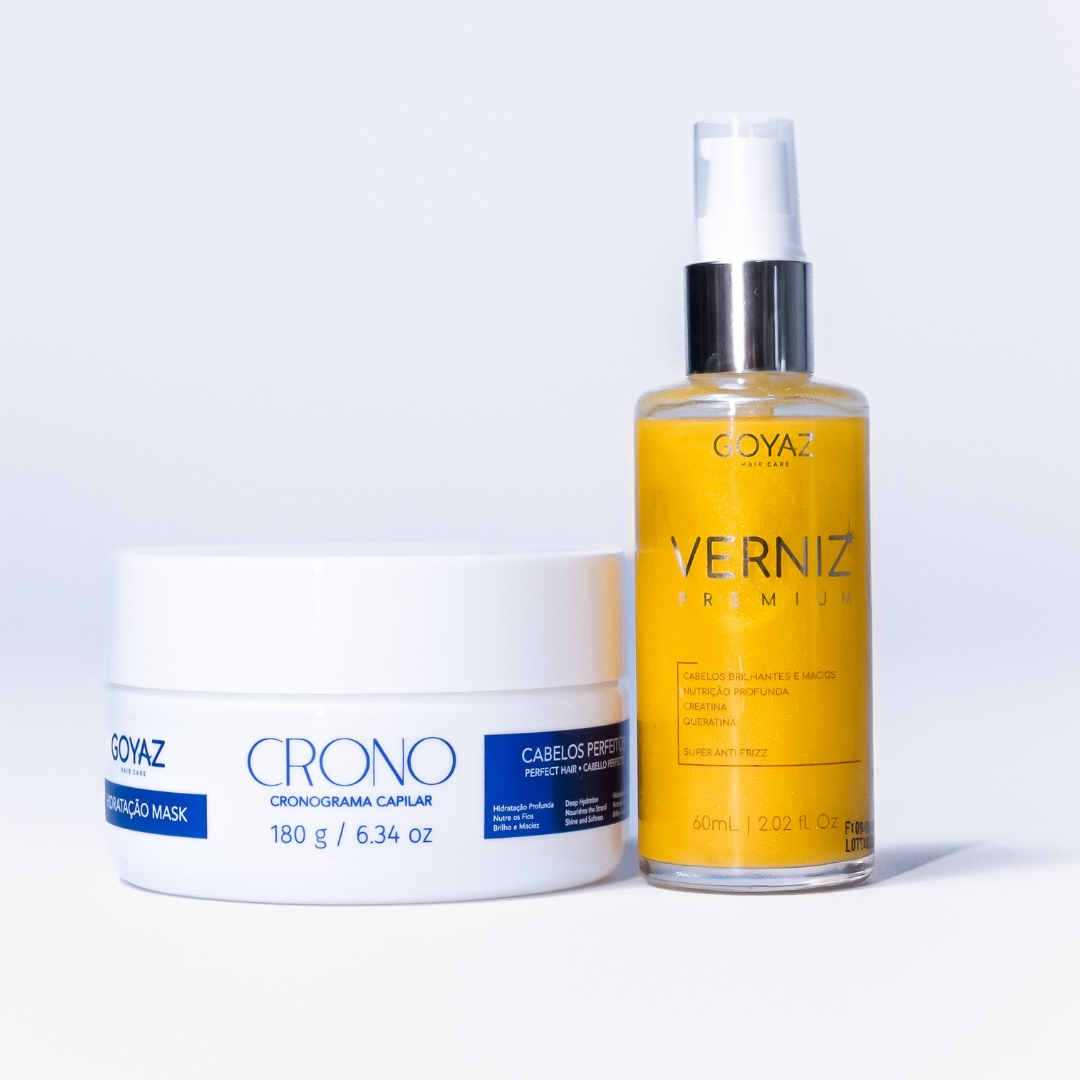 A combinação da Hidratação Mask com o Verniz Premium proporciona hidratação profunda, selagem das cutículas e brilho intenso, nutrindo os fios e garantindo maciez e movimento natural, sem necessidade de calor.